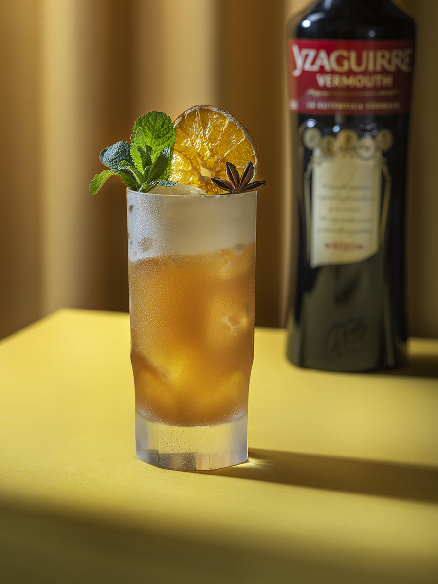 En una coctelera, mezcla 5 cl de Vermouth Yzaguirre Rojo y 3 cl de puré de fruta de la pasión. Añade el jugo de media lima y 2,5 cl de sirope de vainilla. Incorpora hielo y agita bien. Cuela y sirve en nuestra cristalería de autor. Decora con fruta fresca y hierbabuena.