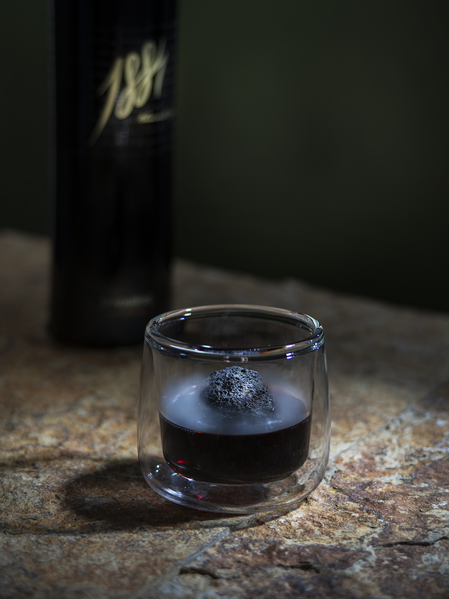 En un vaso mezclador con mucho hielo, servir una medida de Vermouth Yzaguirre 1884 Reserva, una medida de ron Barcelo Onyx y una medida de Graham’s Ruby. Mezclar y enfriar durante 20 segundos y colar en una copa coupe donde se encuentra una piedra volcánica limpia y congelada. Aromatizar con un twist de lima. TIP: Para preparar nuestra roca volcánica, hierve agua a 100º y échala en un bol para que la roca se limpie. Escúrrela y ponla en el congelador.